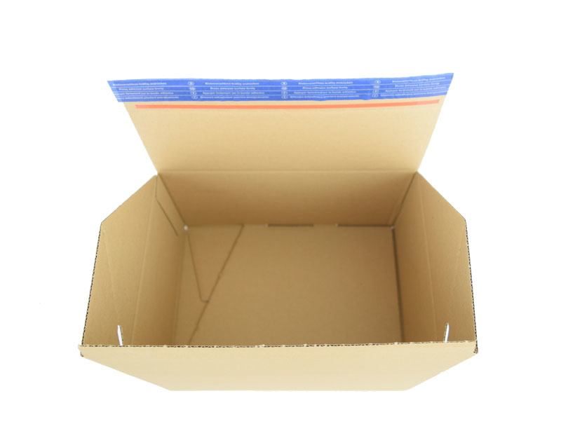 This box is also called an Auto-Lock box. This is because the bottom is already stuck. An automatic bottom. You only have to "push" the box open. The bottom automatically catches in the provided recesses. Then place your product to be shipped in the box, pull the stick-on strip and stick the box closed. It can't get any faster! That way you can really save yourself a lot of time. And no unnecessary tape consumption.
