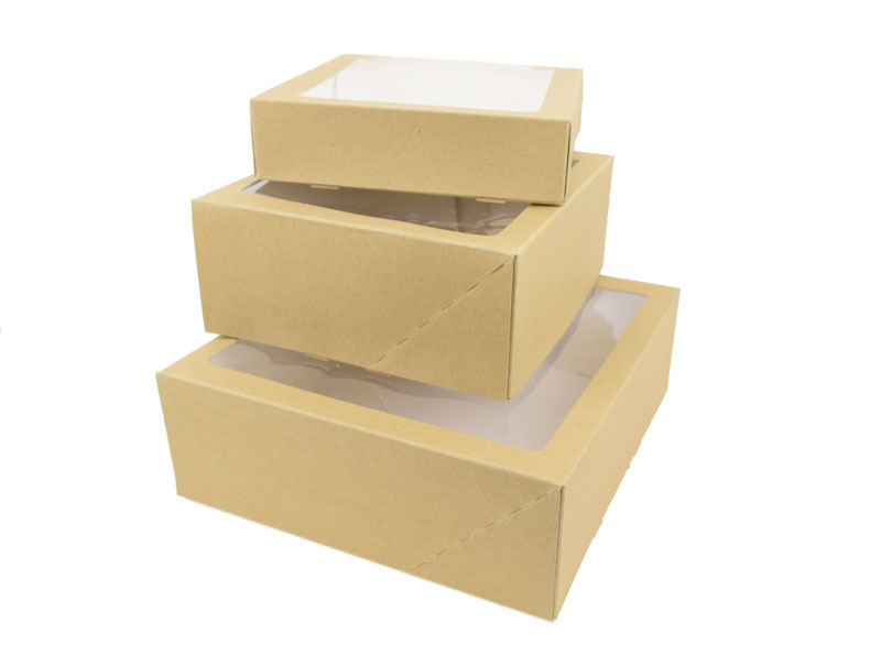 Cakeboxes with window, brown kraft, 26x26+9cm "Robuust"