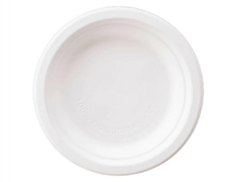 We have plates in different sizes. There is also the choice between round, oval or square bagasse plates and round plates with compartments. Or how about our soup plates. Both in brown and white.