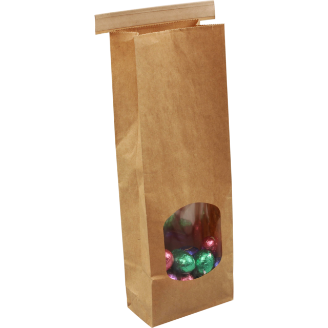 The large window on the zip-closure bags ensures a beautiful presentation of your food. Thanks to the sturdy block-bottom and side gusset, the bags are also suitable for heavier items, such as muesli, grains, dried peas, dried fruit, nuts, cookies, chocolate, and candy. For very greasy products, you might want to choose different packaging.