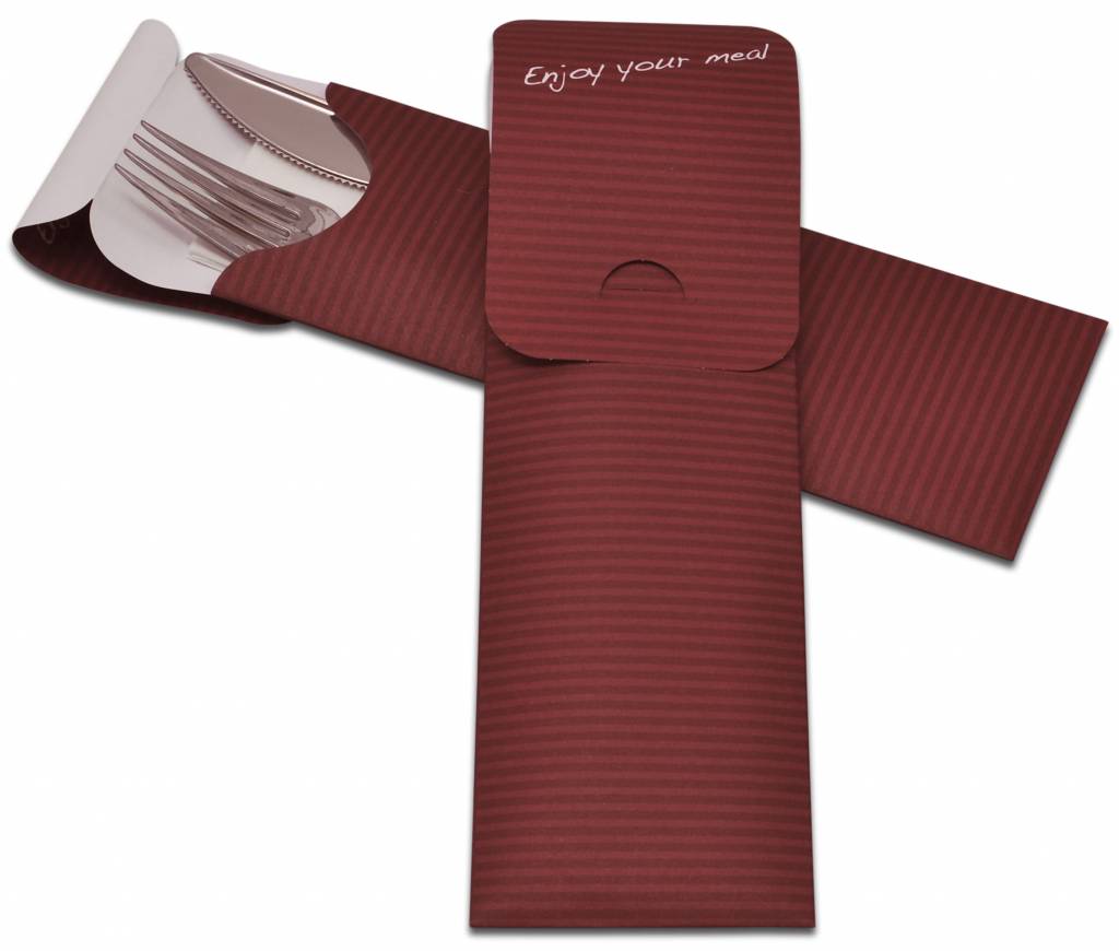 The Naptidi cutlery pouch is a paper bag filled with a 2-ply high-quality napkin. The format napkin is 40x40cm. Available as standard with 3 different designs. This cutlery pouch has a special appearance due to the "flap".