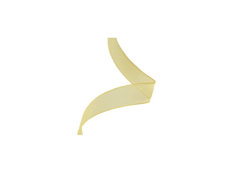 Organza ribbon 25 mm. Woven edge with iron wire, Ocher gold / yellow