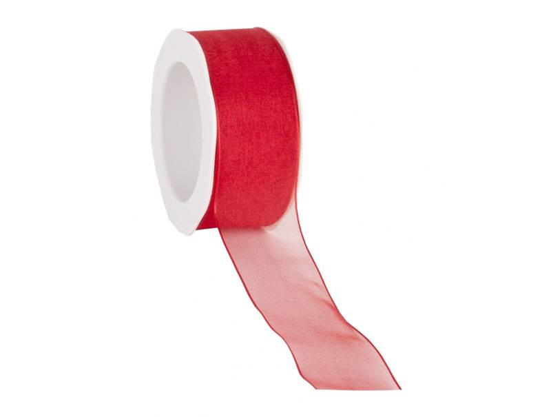 Organza ribbon 25 mm. Woven edge with iron wire, Red
