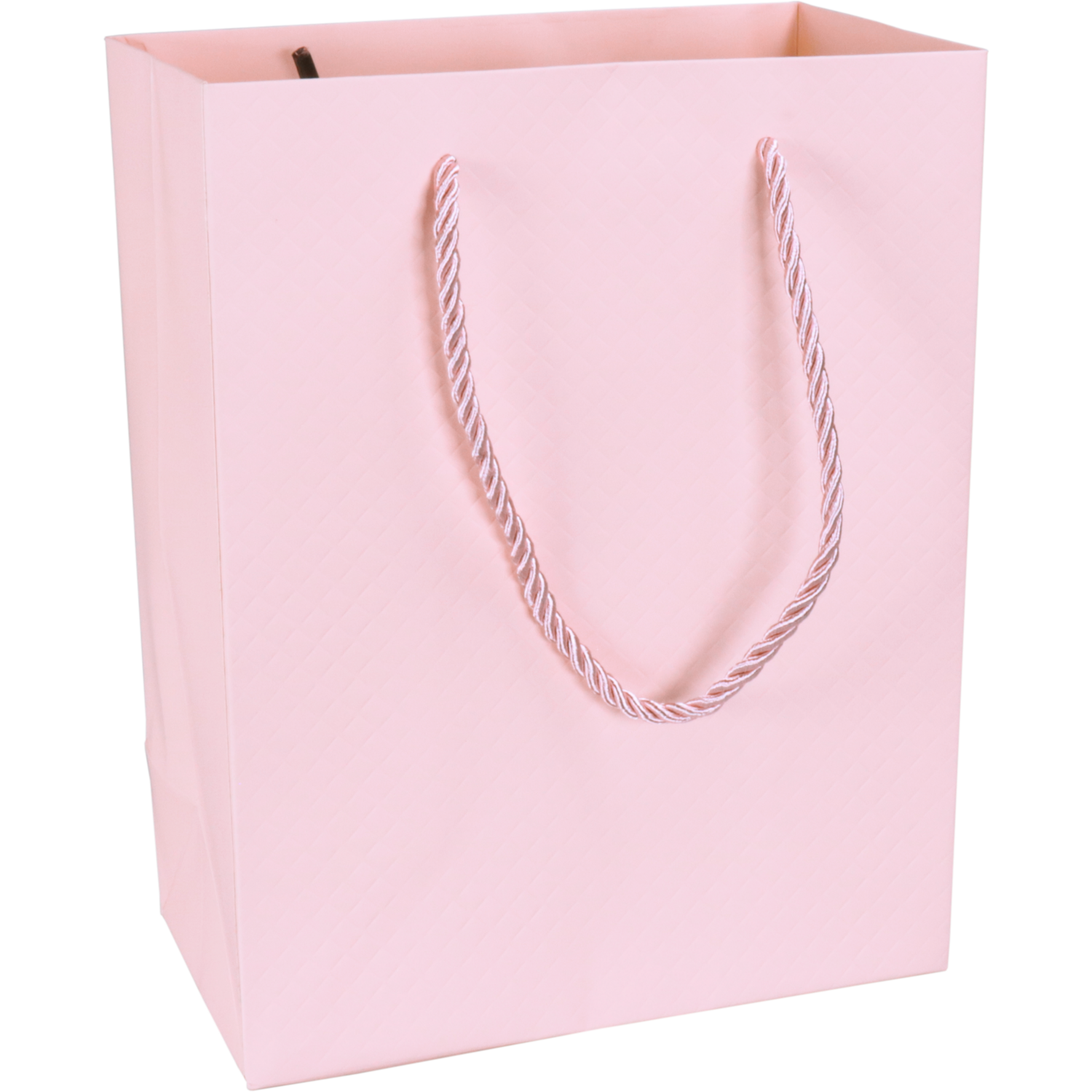 Give every gift a premium look with these stylish pastel pink paper bags. The embossed finish adds a luxurious feel and extra strength, making them perfect for high-quality presentation.
