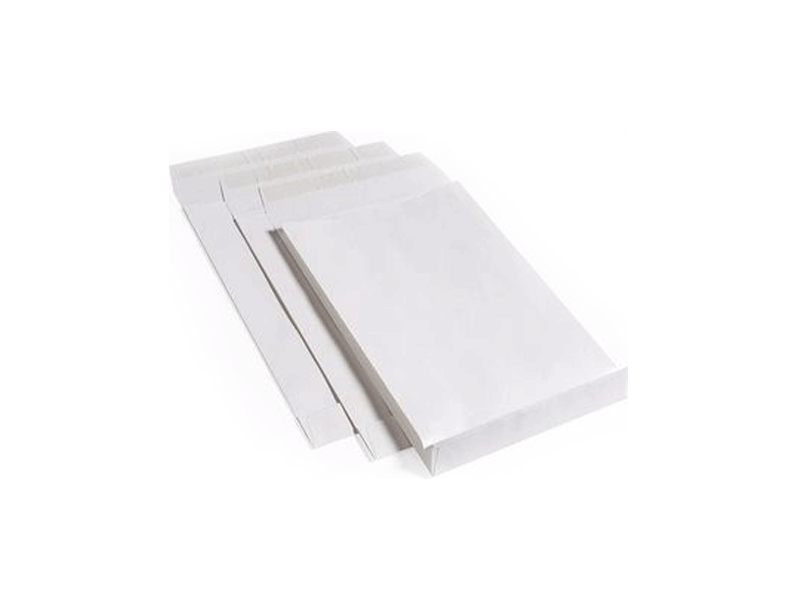 These strong sample bags are made of plain white kraft paper 170 grams and have side gussets, reinforced block bottom and self-adhesive strip in the flap.