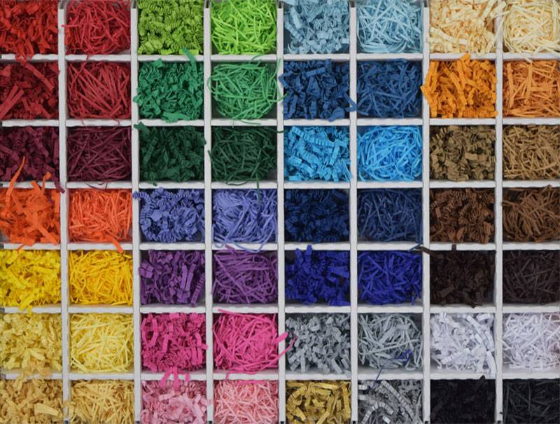 The SizzlePak version is recognizable by the striking zigzag shape. SizzleFine has nice thin strings. Both versions are extremely suitable for use as filling material for boxes, trays and bags. Think of the chocolate Easter bunny on a nice bed of green Sizzle. Or as soil material for that special Valentine or Mother's Day gift. It can be used for many things. You can also mix different colors to present your products very special.
