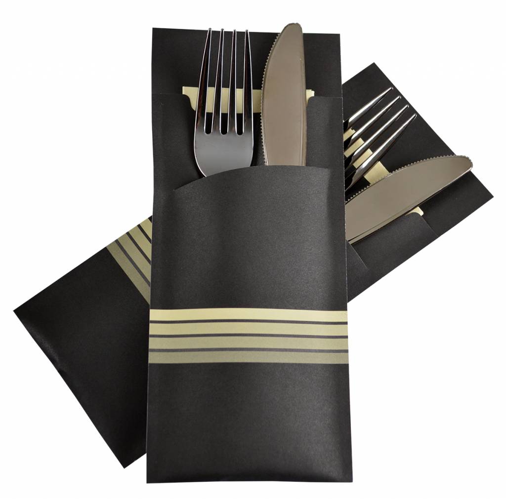 The Pochetto is a stylish cutlery pouch, standard filled with a high quality 2 ply napkin. The napkins are standard 33 x 33 cm.