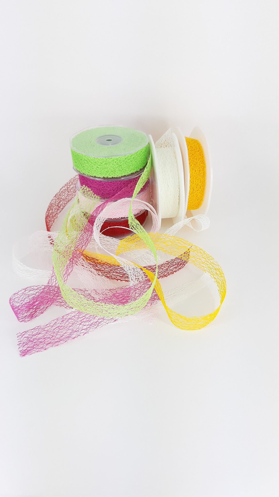 Other names for this Crispy ribbon are Honeycomb, Yarn Fabric or Web ribbon.